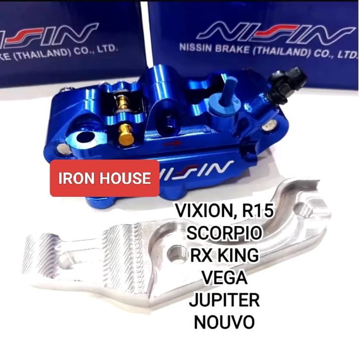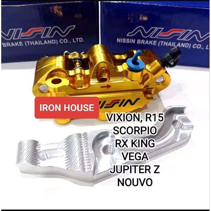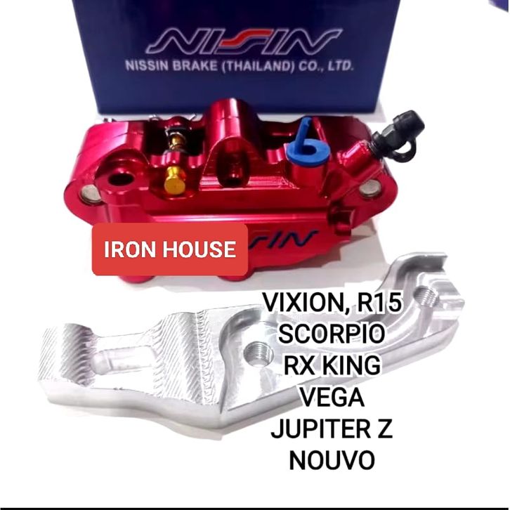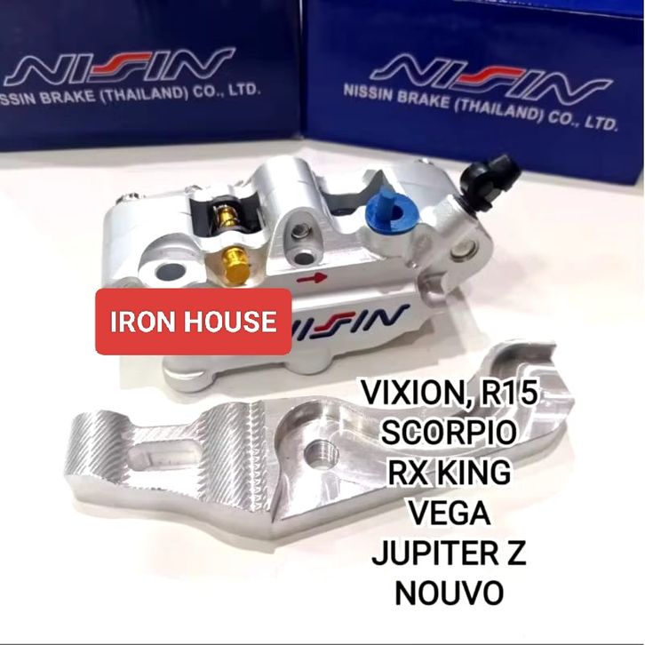 Paket Kaliper Monoblok 4 Piston Depan + Breket Yamaha Vixion / Nuvo / RX King / Scorpio / Byson / Jupiter Z/ Fizr / Veg