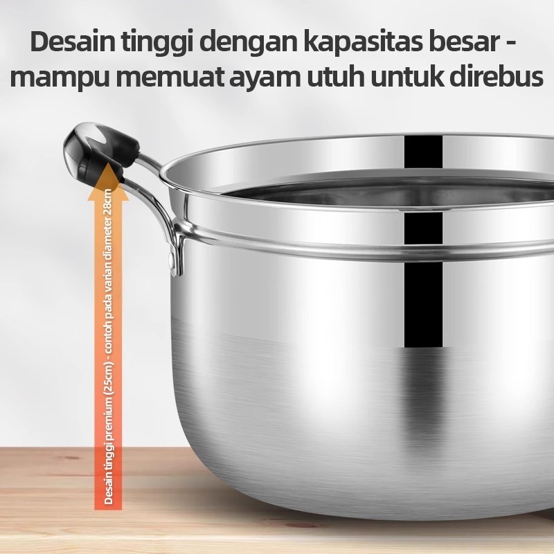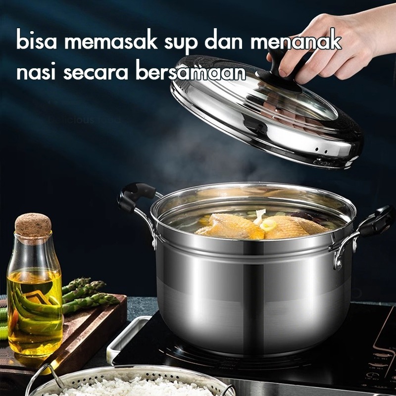 Omicko Panci kukus stainless steel berkualitas tinggi, panci kukus multifungsi, panci sup, panci nasi/sup