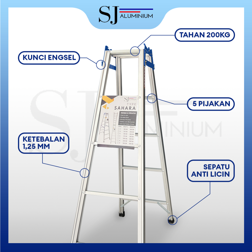 [SAHARA] Tangga Aluminium / Tangga Lipat / Tangga Aluminium Lipat - Jumbo & Multifungsi Tahan 200 KG - Sahara Biru 150 C