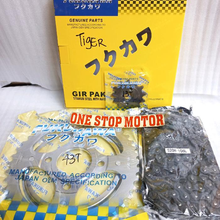 GEAR SET GEAR GIR PAKET HONDA TIGER TIGER REVO 520H-106L 43T/13T ORIGINAL ORI ASLI FUKUKAWA