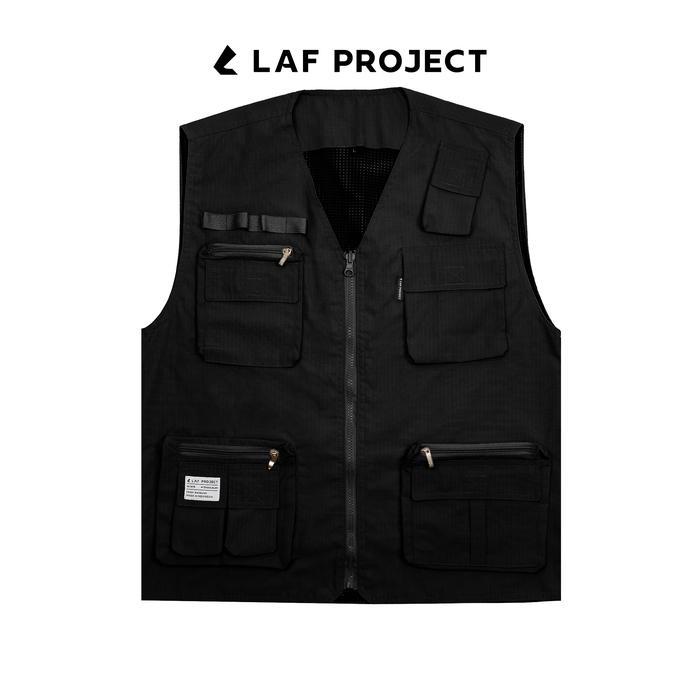 LAF Project - Rompi Vest Pria Hitam Casual Tactical Cargo Outdoor Formal - Black M