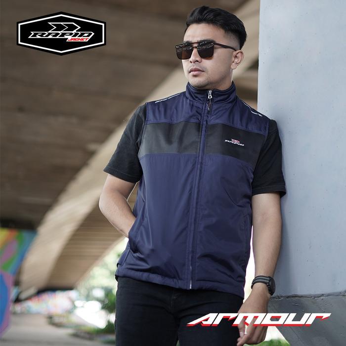 Rompi motor pria touring anti angin RAPID ARMOUR pelindung dada reflextif bahan parasit premium - ABU/HITAM L/XL