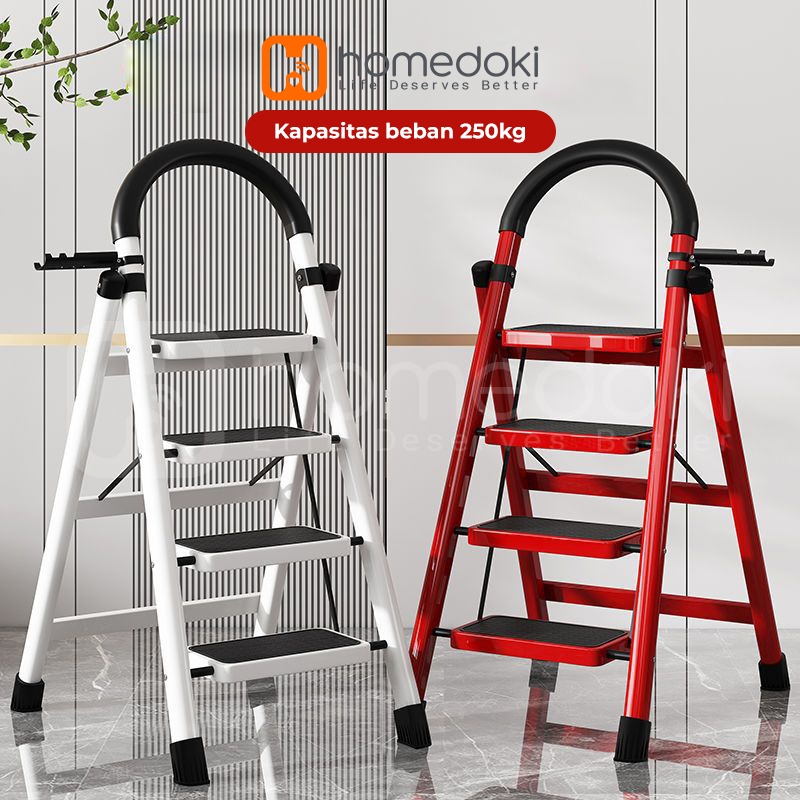 Homedoki Tangga Rumah Lipat Tangga Besi Lipat 3/4 Step Household Steel Ladder/ Tangga Lipat Aluminium 4 Step Premium Lad