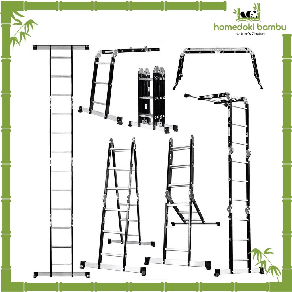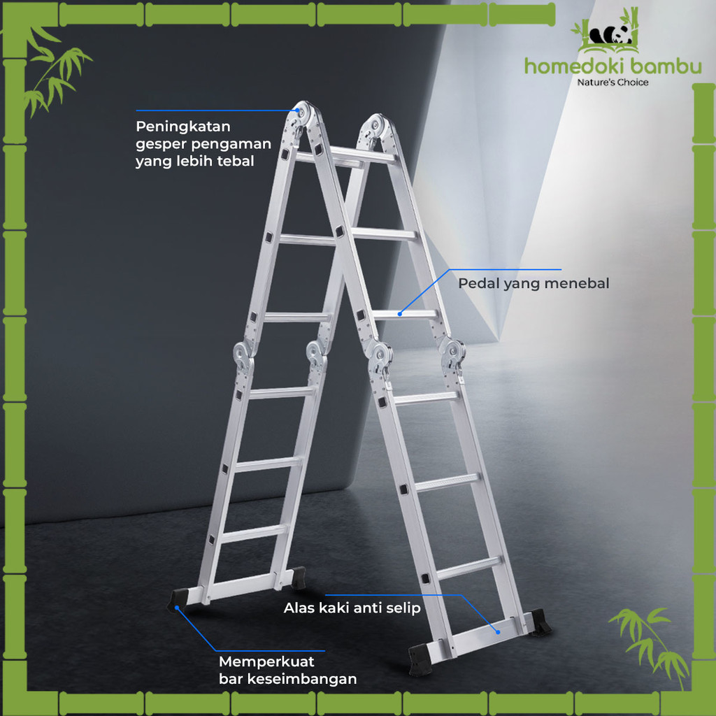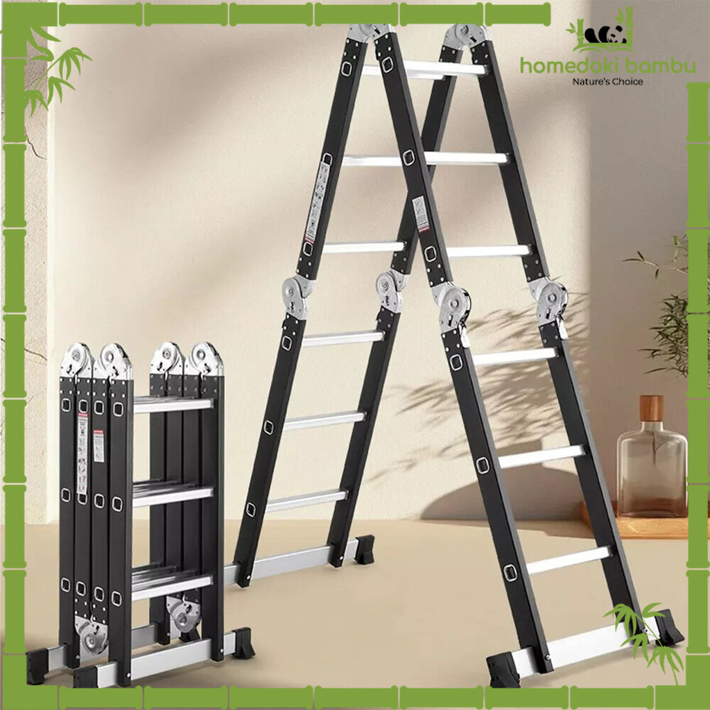 Homedoki Bambu - Tangga Lipat Aluminium/Tangga Besi/Tangga Lipat/Tangga 9/10/11/12 Steps