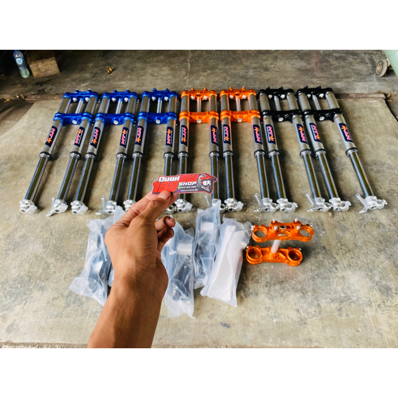 oren, hitam, biru, Biru ht pro2024, Merah klx, Merah crf150l, shock depan