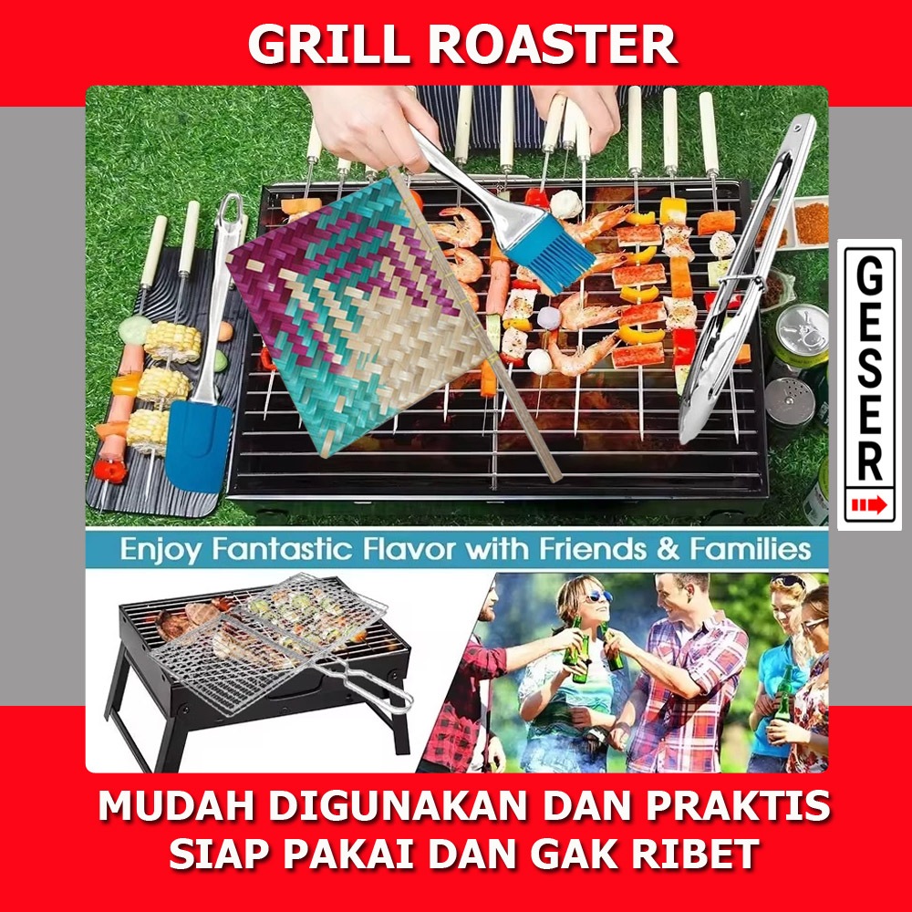 Promo Panggangan Portable Plus Capit Kuas Spatula Kipas / Panggangan BBQ Grill Plus Capit