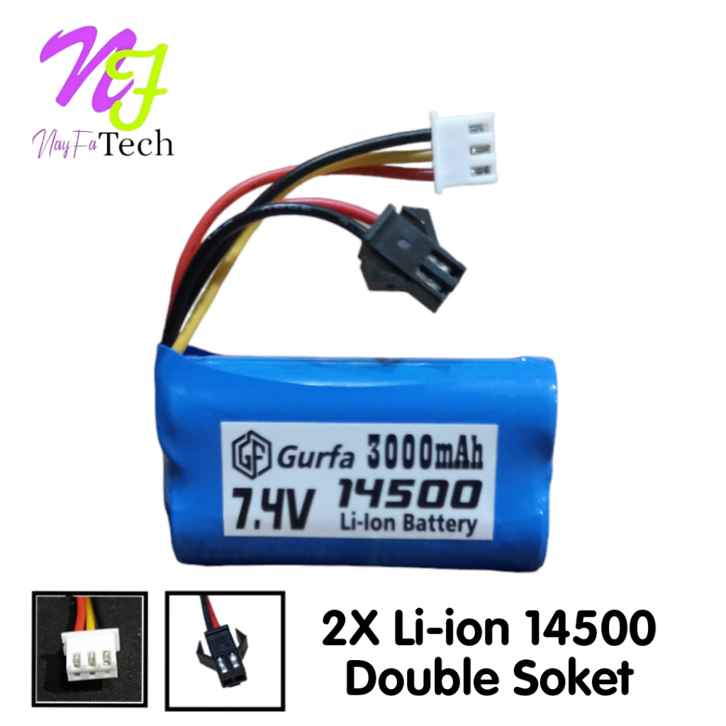 Batterai Mobil Remot/RC Double Socket Type 2x 14500 Li-ion 7.4volt - 3000mAh