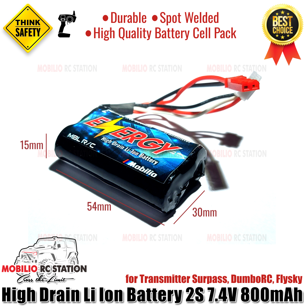 Baterai High Drain Li Ion Battery 2S 7.4V 800mAh for RC Remote Surpass DumboRC Flysky Transmitter