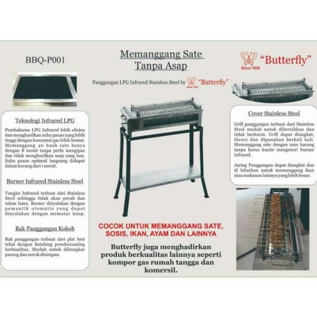 Panggangan sate infrared stainless butterfly plus rak 70cm