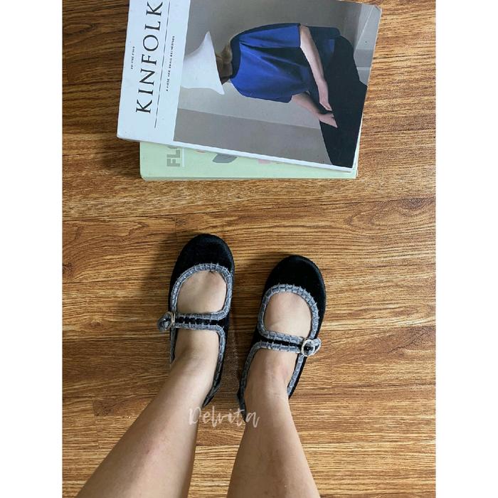Wilona Shoes Women Flats Tali Wanita Rajut Manik Mote Untuk Main Cewe Wanita Perempuan Kekinian