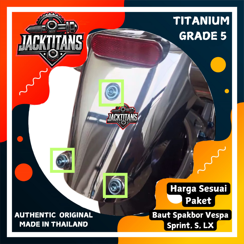 Baut Spakbor Belakang Vespa Matic Sprint Primavera S Lx Gts Titanium GR5 Made in Thailand Jacktitans