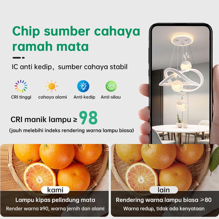 Lampu Gantung Kristal Modern 3Warna 72W LED Lampu Gantung Ruang Tamu Minimalis Kamar Tidur Hias - Putih+Remote