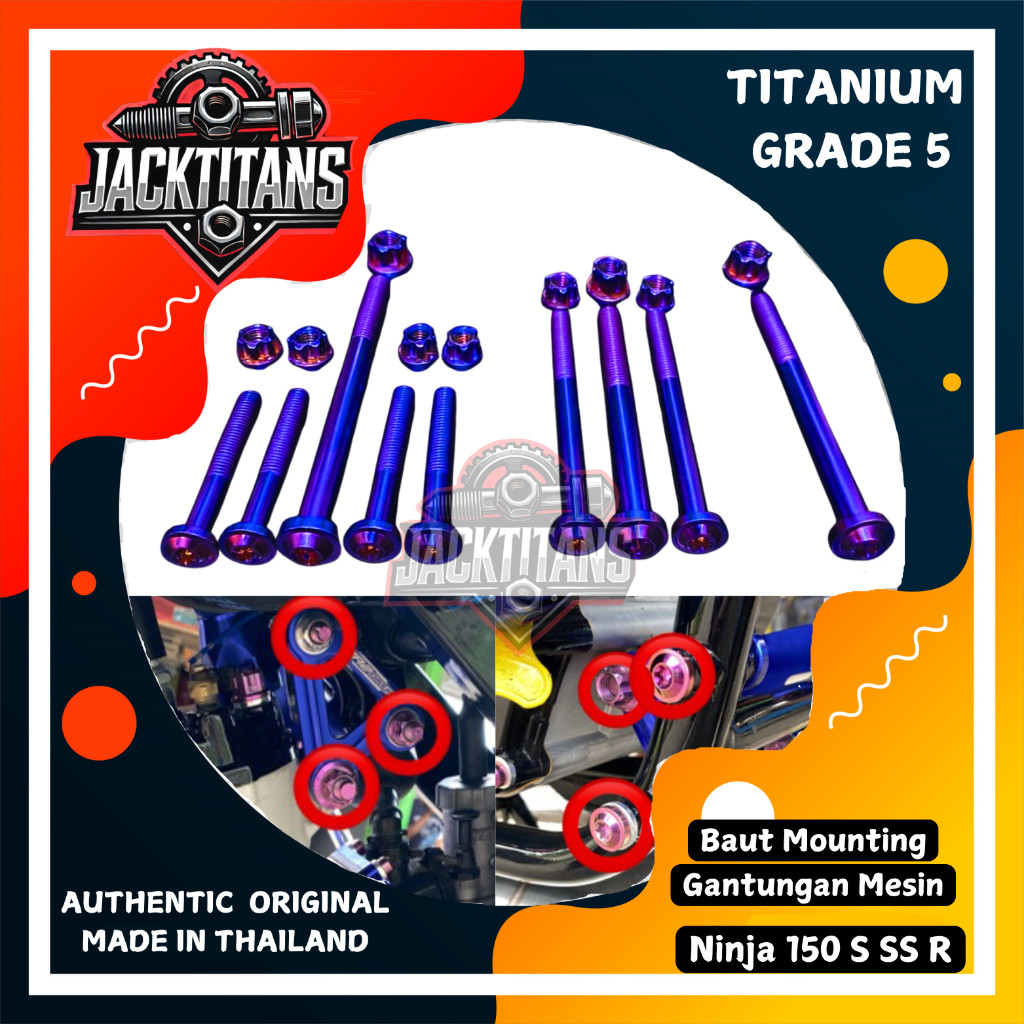 Baut Engine Mounting Pangkon Gantungan Mesin Ninja 150 SS R S Original Titanium GR5 Thailand