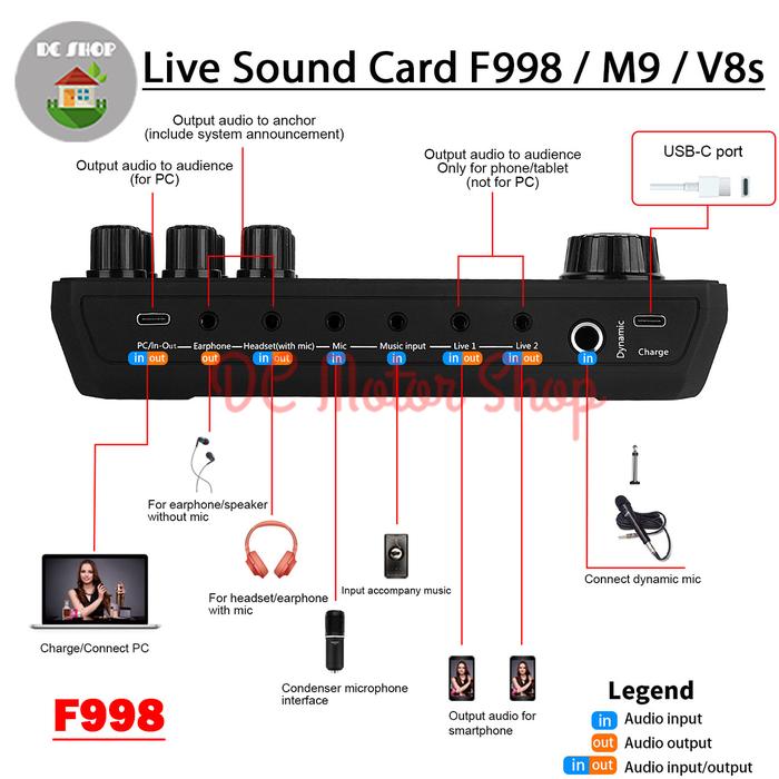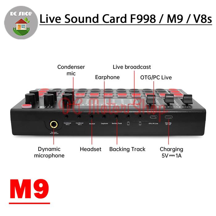 Sound Card V8S / M9 / F998 Mixer Bluetooth Audio Usb External
