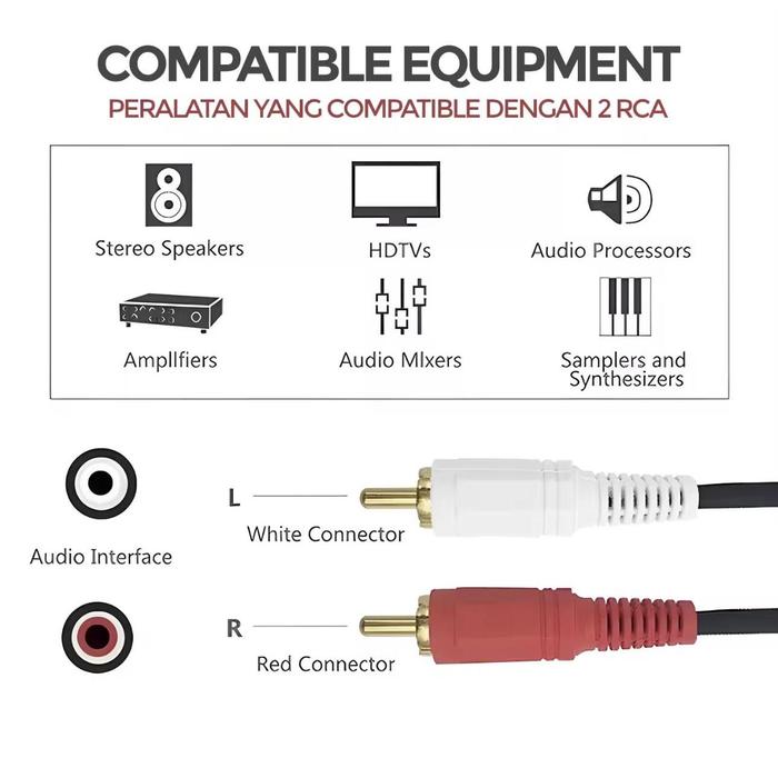 Kabel Audio Aux 3.5 Male 1 To 2 RCA Male Audio 2 in 1 / Kabel Audio AUX 1 To 2