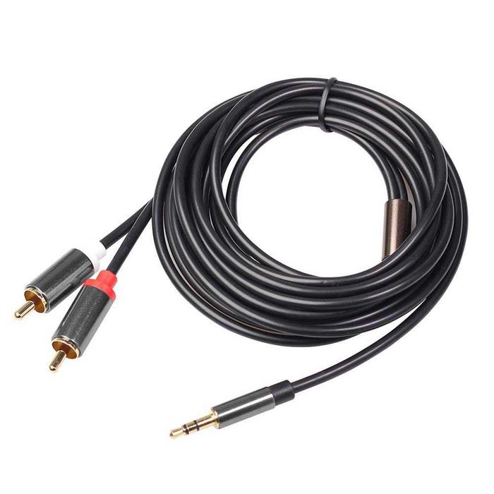 c06 Konverter Kabel Jack Audio 3.5 mm Male HP Laptop PC Ke RCA Speaker Stereo Panjang 5 Meter - Hitam 200 CM