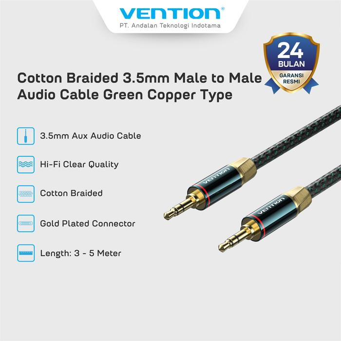 Vention Kabel AUX Audio Jack 3.5mm TRS Male to Male Cable 3M 5M - BAY - Green Copper 3M