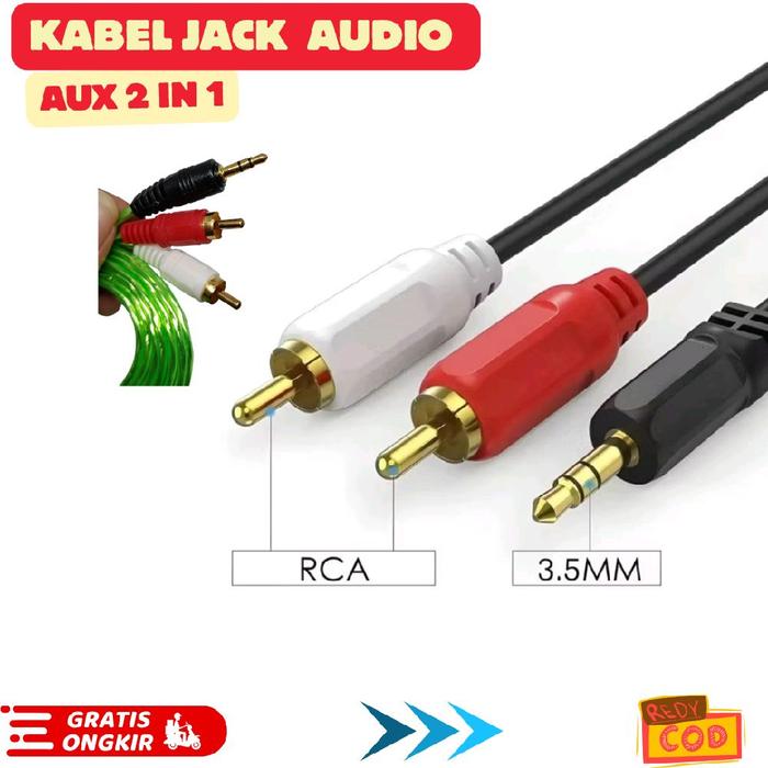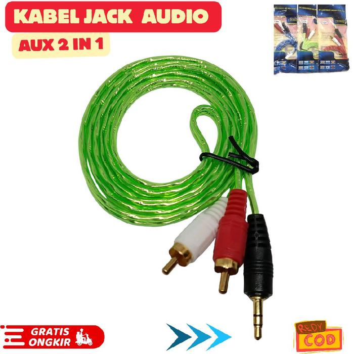 KABEL JACK AUDIO AUX 2IN1 KABEL 1M KABEL RCA AUX 1 TO 2 SPEAKER HANDPHONE