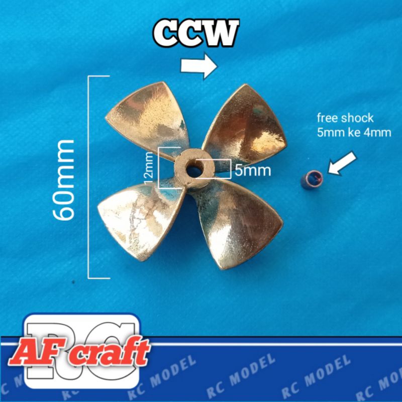 Propeller RC Tugboat Shaft 5mm Kuningan Asli 60mm CW/CCW