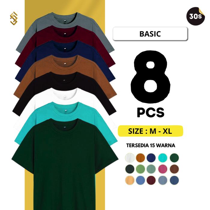 [8PCS] KAOS POLOS SANTAI UNISEX PRIA WANITA POLYTTON 30S OBLONG DEWASA BAJU DISTRO ATASAN PENDEK KEREN SURFING WOK CEWEK UNISEX - 8PCS,RANDOM, M