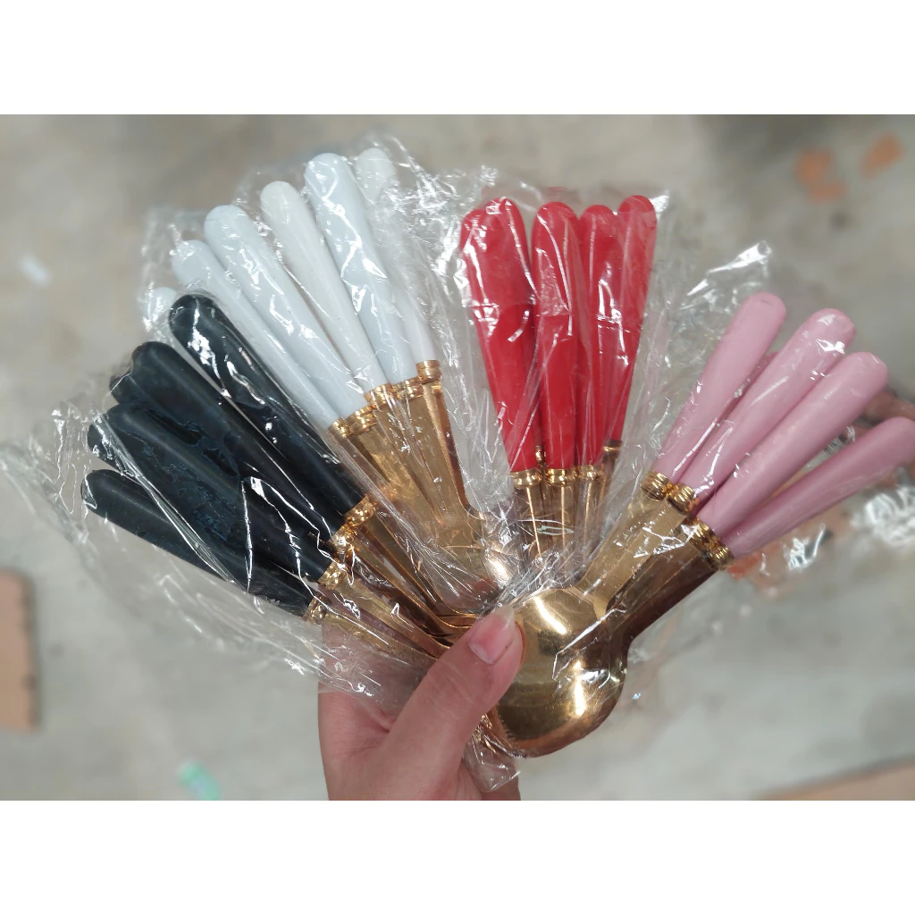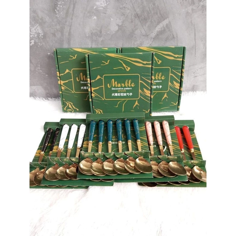 PROMO FREE ONGKIR Sendok kuning marble | sendok sultan premium isi 6pcs tanpa box (best seller❤️)