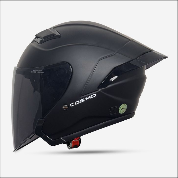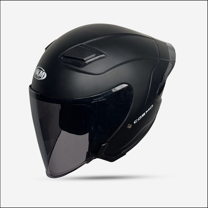 Helm miliA Cosmo Solid Hitam Doff Kaca Visor Hitam Smoke/Helm Half Face Kekinian Pria Wanita Dewasa