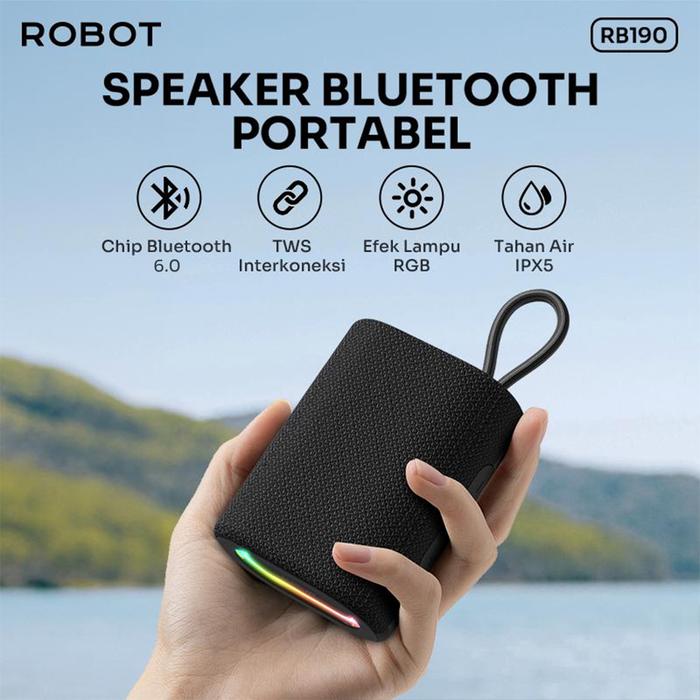 [EXCLUSIVE LAUNCH] ROBOT RB190 SPEAKER WIRELESS BLUETOOTH 5.4 PORTABLE POWERFULL BASS 5W TAHAN AIR IPX5 DENGAN EFEK LAMP