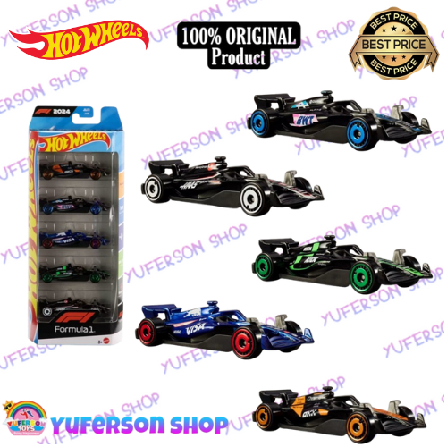Hot Wheels Hotwheels 5 Pack Race Team Set Of 5 Formula 1 F1 Themed 1:64 Scale Die Cast Toy Cars JGF58