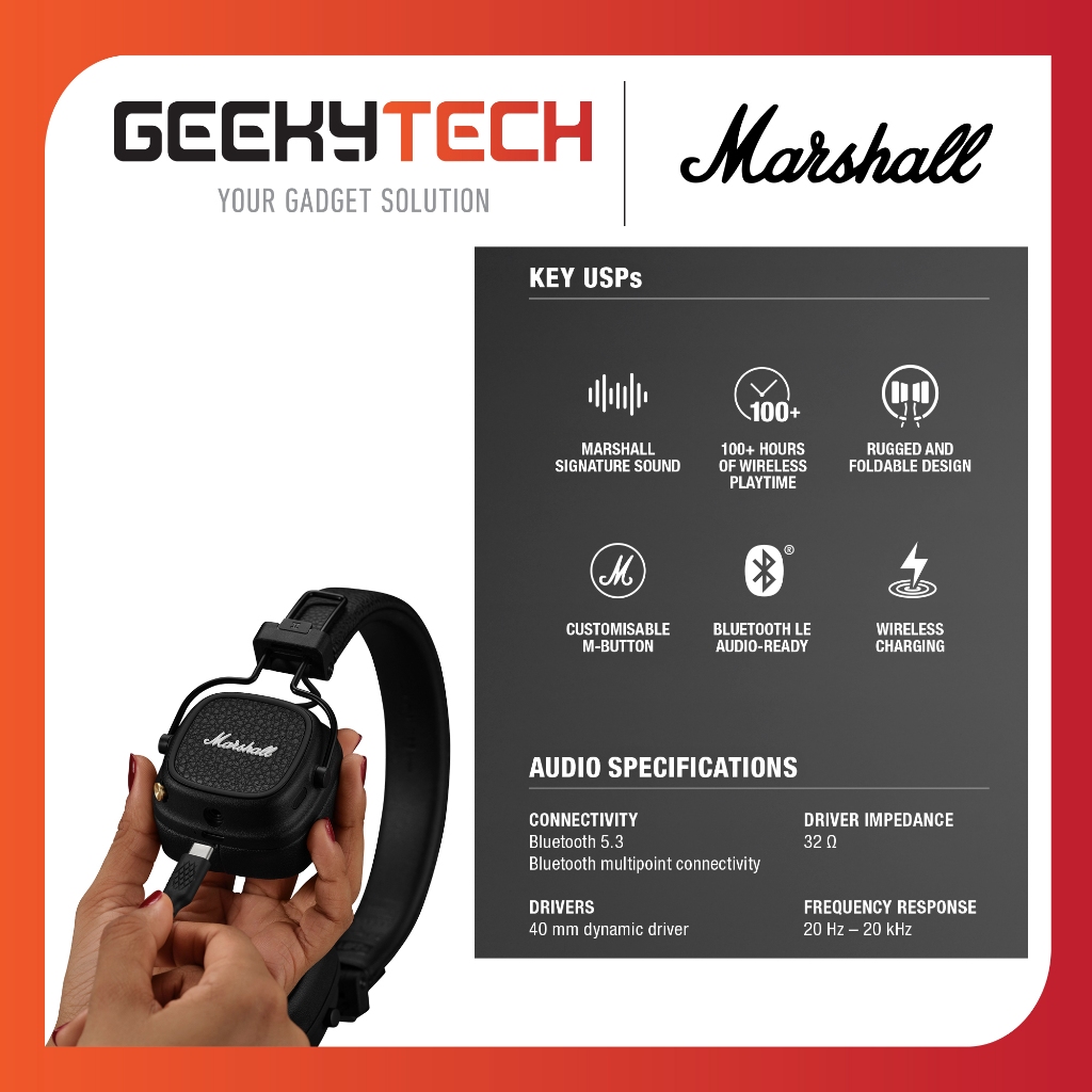 Marshall Major V Bluetooth Headphone Headset Major 5 - Garansi Resmi