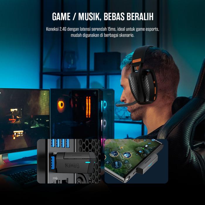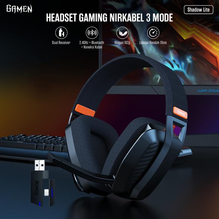 GAMEN SHADOW LITE BLACK HEADSET BLUETOOTH 5.3 GAMING WIRELESS 3 MODE KONEKSI LOW LATENCY DRIVER 40MM SHADOW LITE BLACK B
