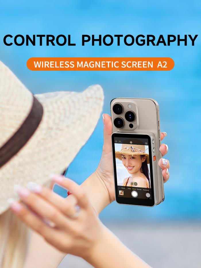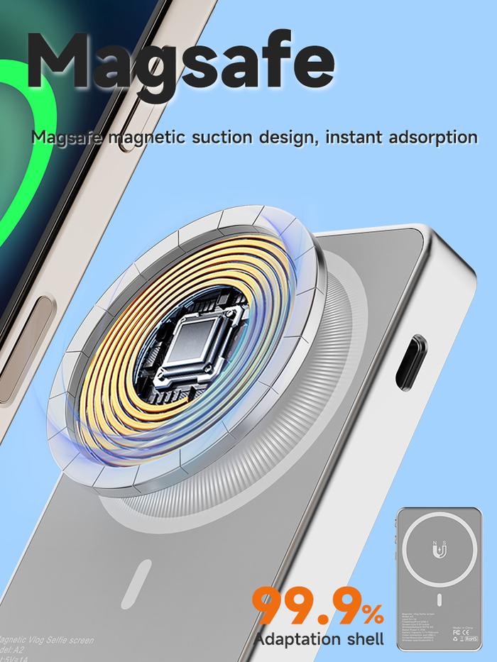 KV A2 SELFIE SCREEN MONITOR VLOG MAGNETIC MAGSAFE WIRELESS AND WIRED 4K FOR IPHONE & ANDROID - HITAM