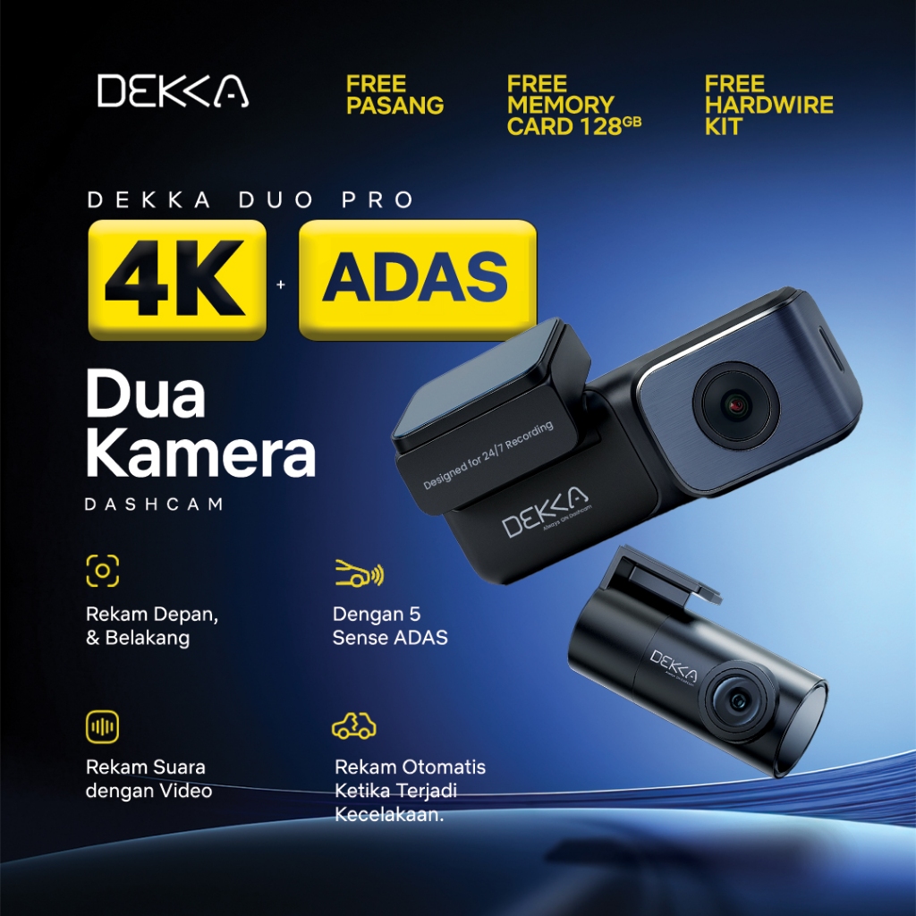 Dashcam Mobil 4K Kamera Depan Belakang ADAS Wifi 5 GHz GPS Always On Gratis Pemasangan