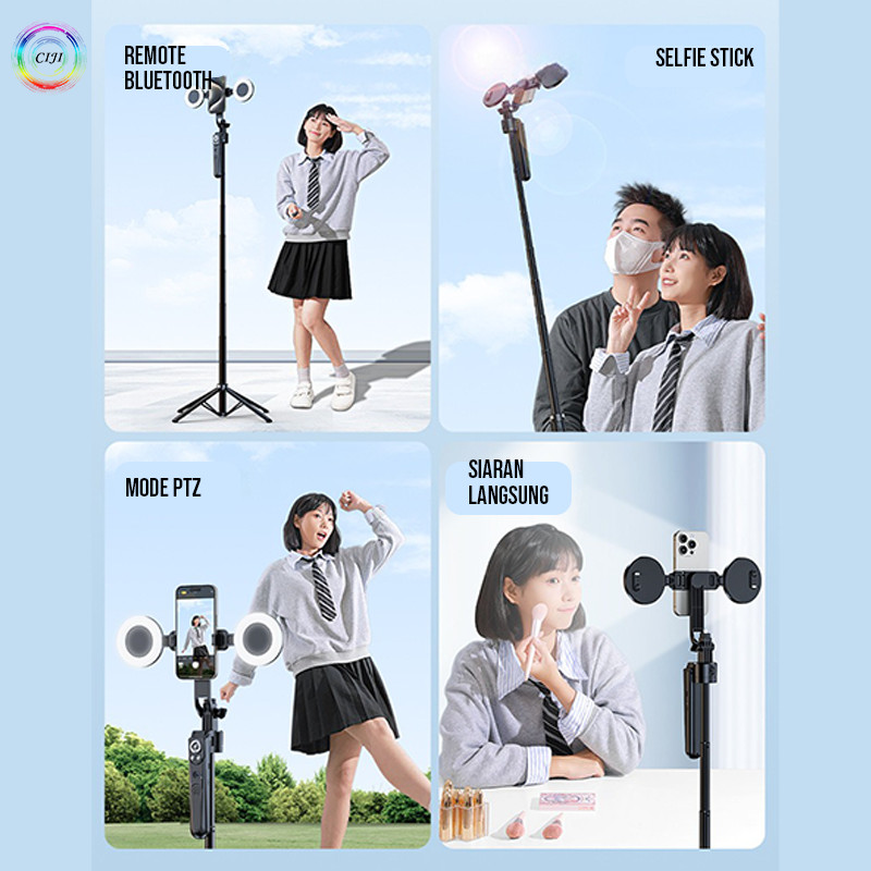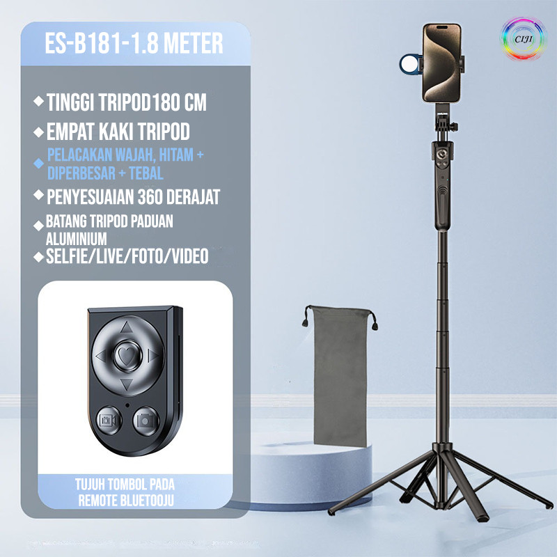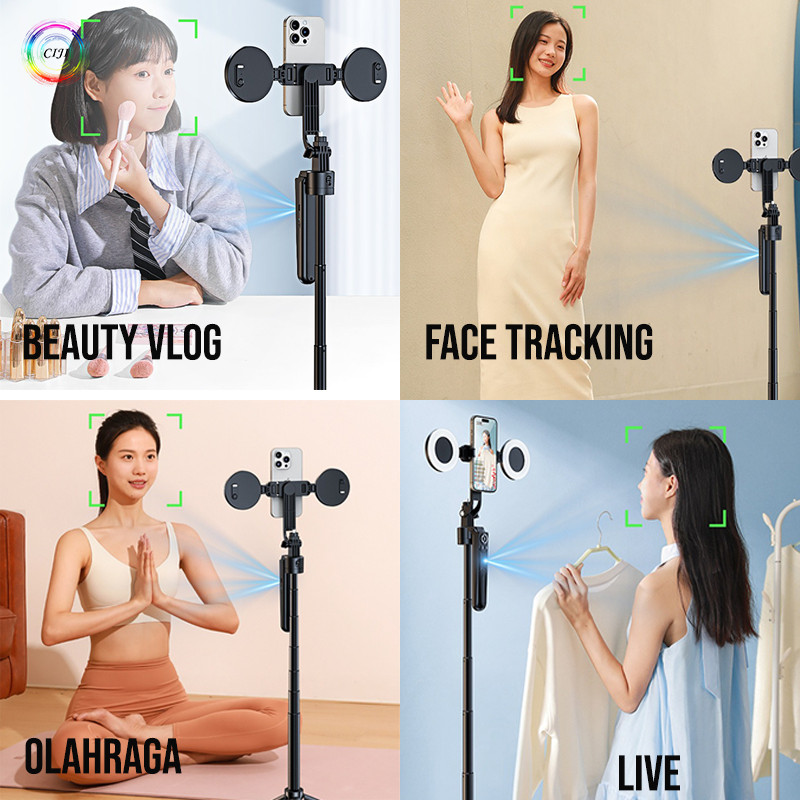 Ciji Tripod Selfie Stick Esb181 Smart Face Tracking Ai Camera/Handphone/Ringlight Panoramic Auto Balance Tinggi 180Cm Ca
