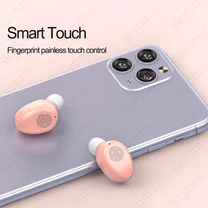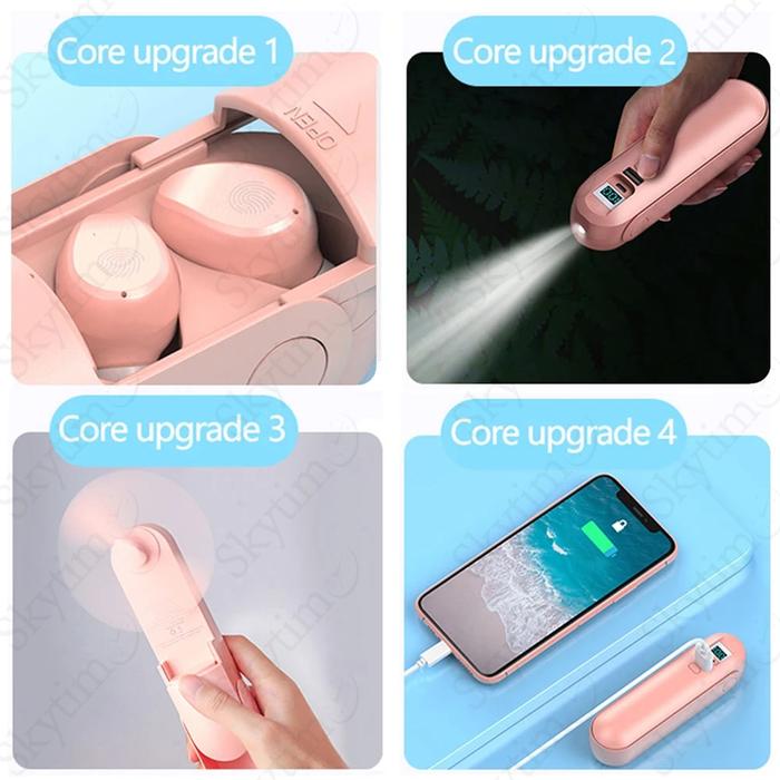 SKYTIME 4IN1 EARPHONE BLUETOOTH T64 WITH FAN POWERBANK FLASHLIGHT HIGH QUALITY HEADSET TOUCH CONTROL - T64 - PINK
