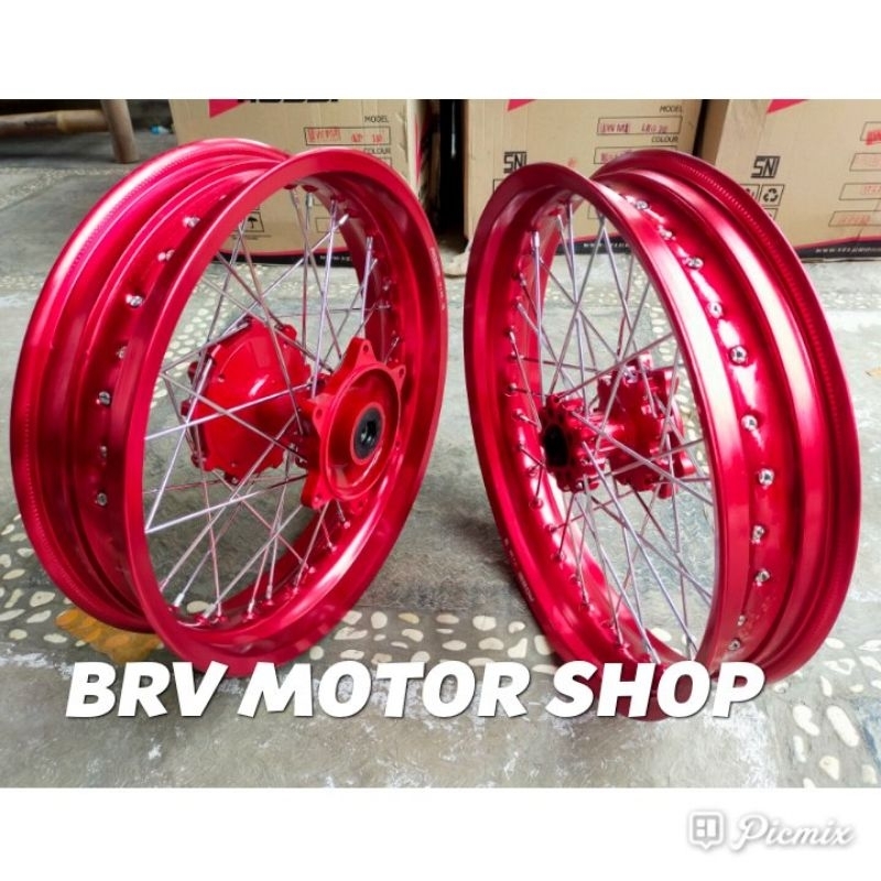 Velg SuperMoto Crf150L Ukuran 300-350+17 Ban 110 Dan 130 Tromol Original Ban Tubles ban 100-80-17 dan 120-70-17