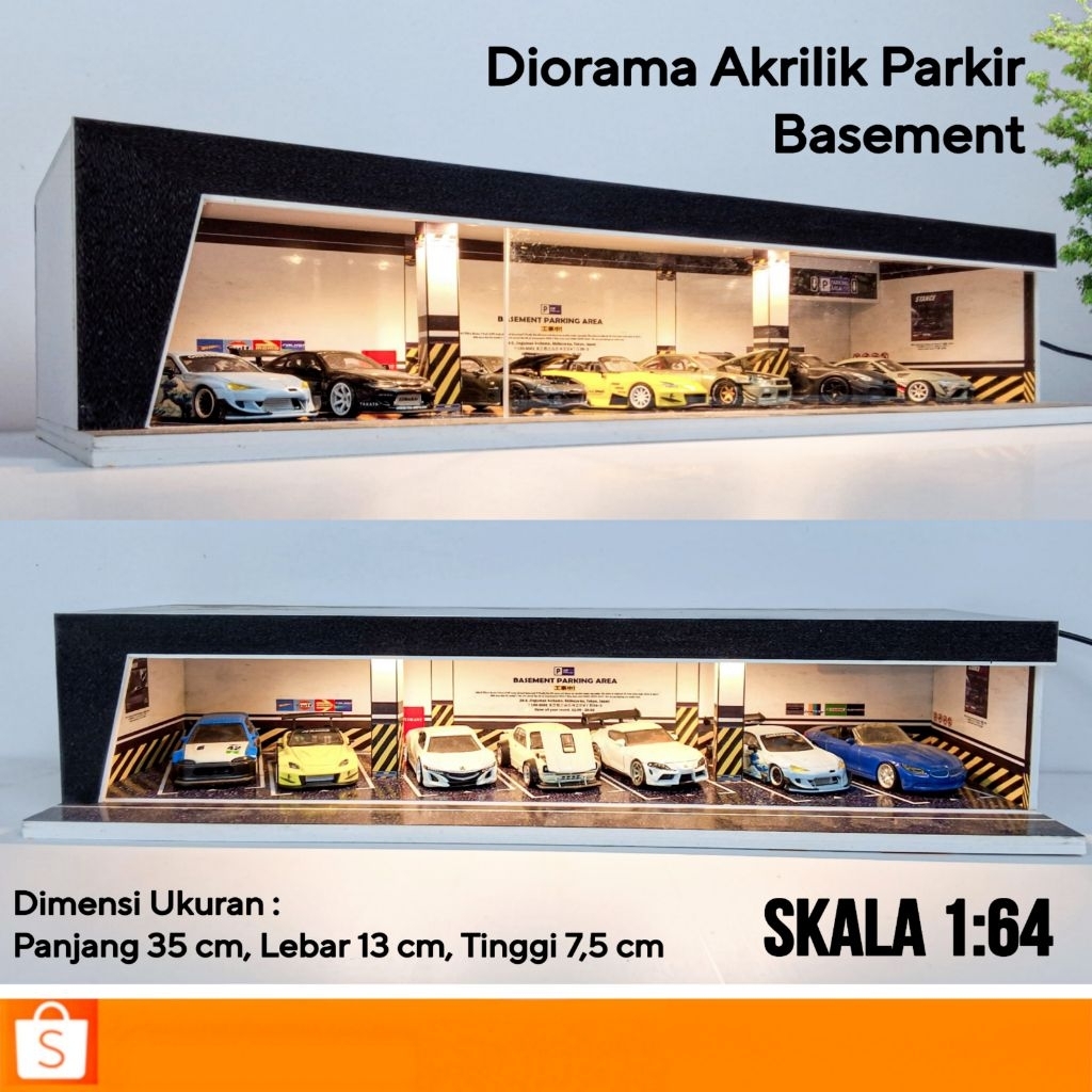 Diorama Parkir Basement Akrilik | Garasi Hotwheels | Parkir diecast Skala 1:64