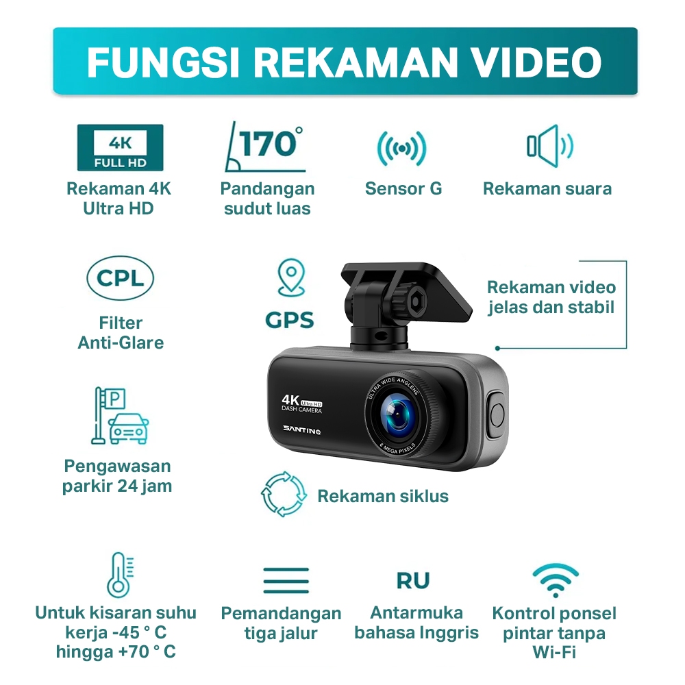 Dash Cam Pro Plus V22 Set 4K GPS (Front +Rear Camera) Dashcam Mobil Perekaman Loop 24 Jam Berisi kartu Memori 64GB