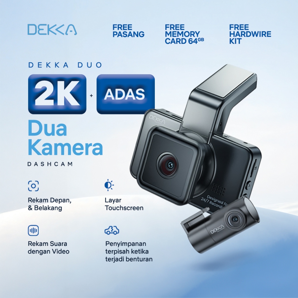 DEKKA DK21 Dashcam Mobil 2K Kamera Depan Belakang ADAS Wifi 6 Always On Gratis Pemasangan
