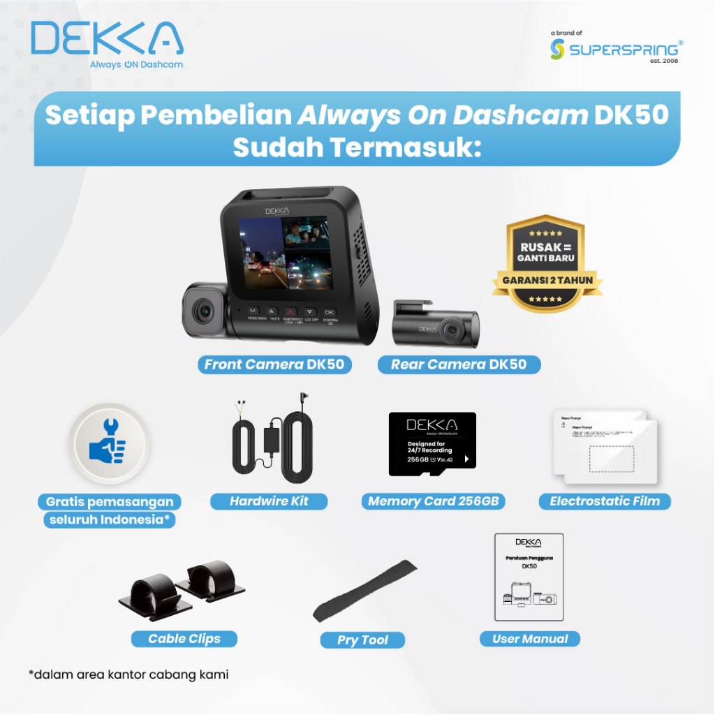 Dashcam Mobil 4K GPS Dual dan Triple Kamera WiFi Night Vision Always On Gratis Pemasangan