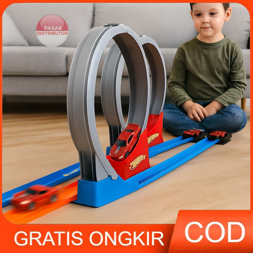 Track Racing Track 2 Jalur Lintasan Mainan Anak Mobil Super Car Hot Speed Looping