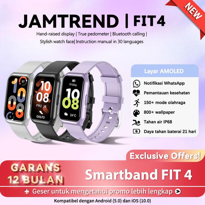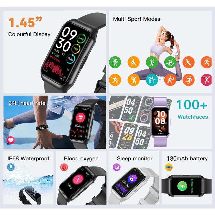 FIT4 SMARTBAND SMARTWATCH BLUETOOTH CALL HEALTH MANAGEMENT WATERPROOF 100+ SPORT MODES REFRESH RATE 60 HZ - BLACK