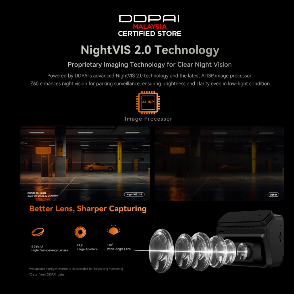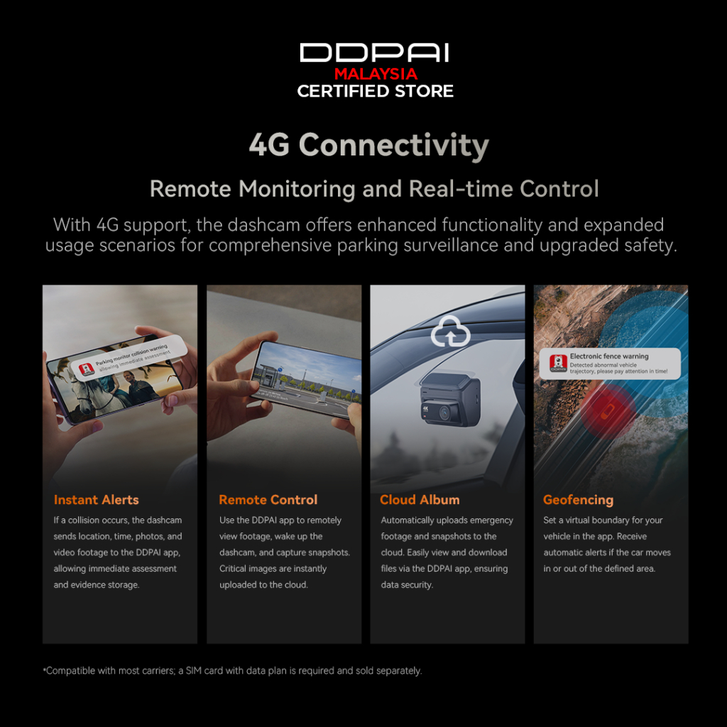 DDPAI Z60 Dual 4K Ultra HD GPS 3 Channel Front 3840& Rear 1920 Super Capacitor Dash Cam with 4G Connectivity Night Visio