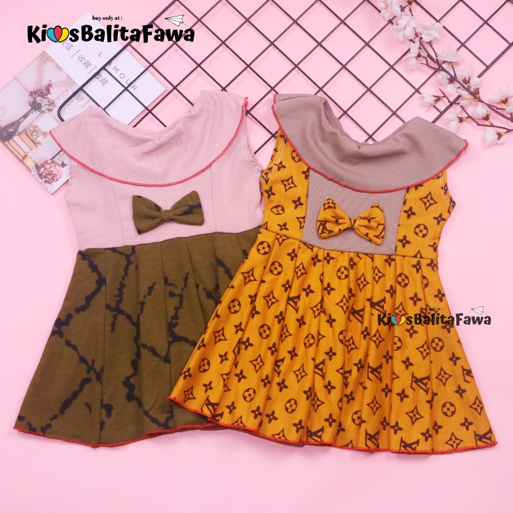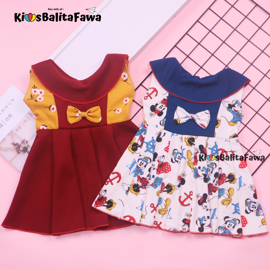 Dress Jasmine size 0-12 Bulan / Dres Bayi Baby Anak Perempuan Baju Lengan Adem Pita Motif Polos