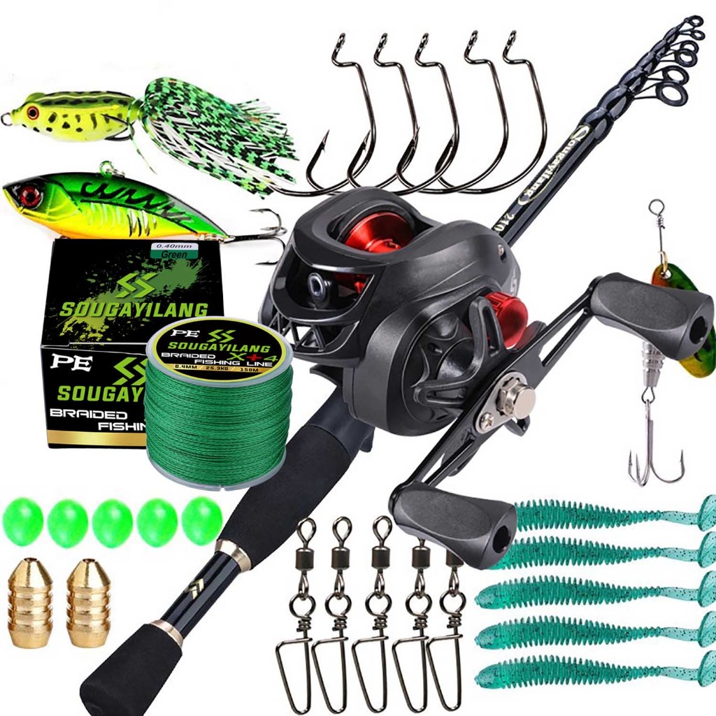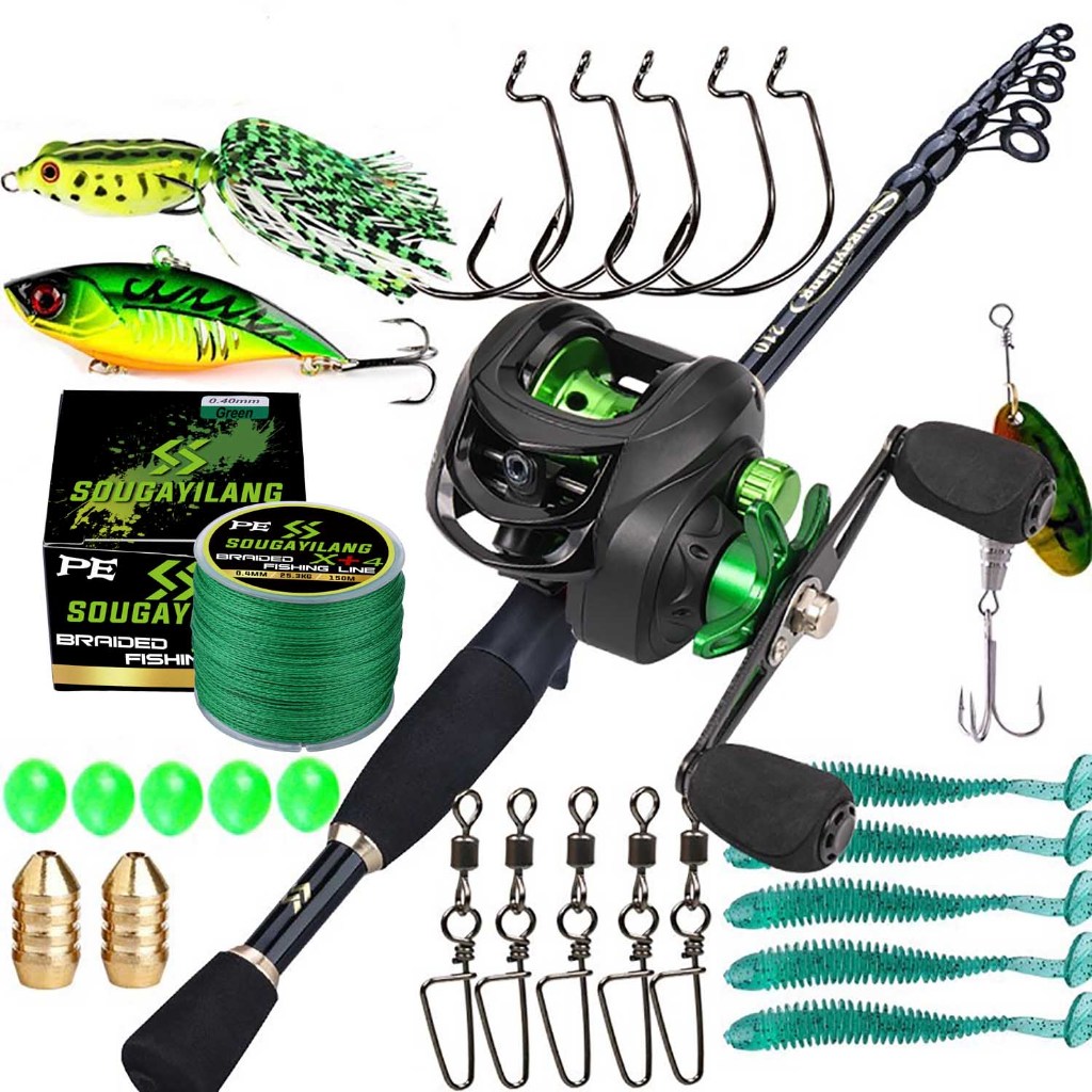 Joran Pancing Combo Telescopic Casting Fishing Rod 1.8-2.4m and Baitcasting Fishing Reel 7.2:1 Gear Ratio Max Drag 10kg