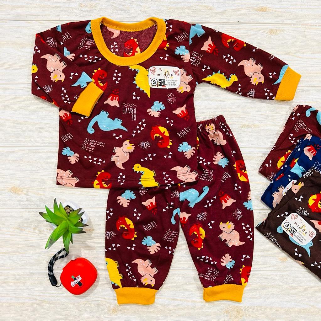 Baju Tidur Anak Setelan Piyama Bayi Lengan Panjang Motif Jungle Print Set Baju Baby Gracia