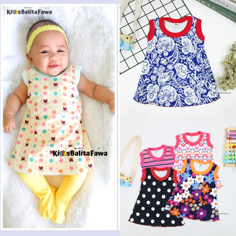 (BISA PILIH MOTIF) Dress Kensi Baby uk 0-12 Bulan / Baju Anak Perempuan Bayi Dres new Born Cewek Lengan Daster Kutung Kutang kiosbalitafawa