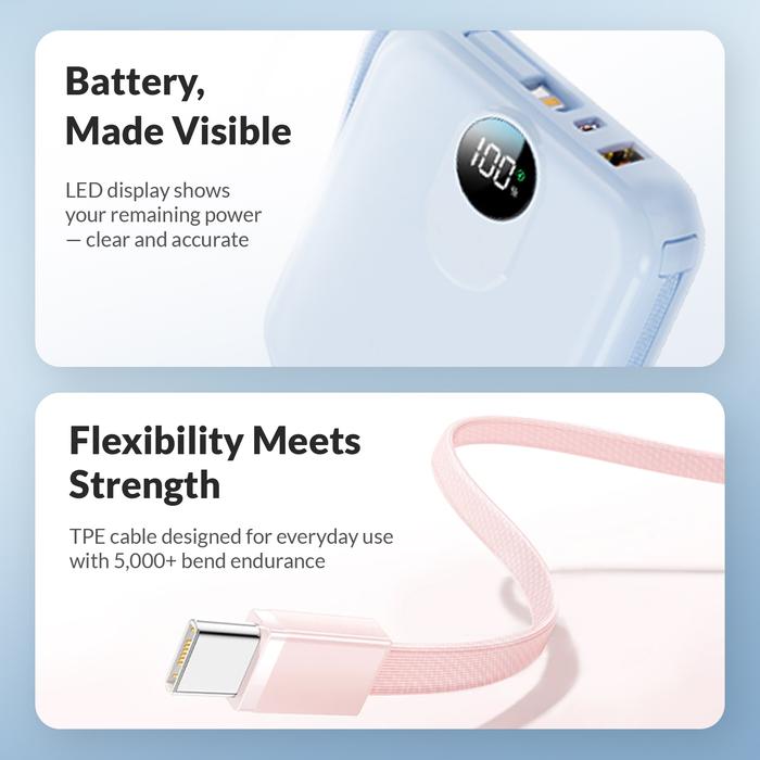 UNEED MINI POWERBANK 10.000MAH 22.5W FAST CHARGING WITH DUAL BUILT IN CABLE – COMPACTBOX N10 UPB247 - PINK