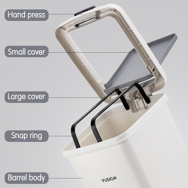Vusign Trash Can / Tempat Sampah Injak / Tong Sampah Plastik Tertutup Ruang Tamu Dapur Kotak 15 Liter VS1111 VS1112