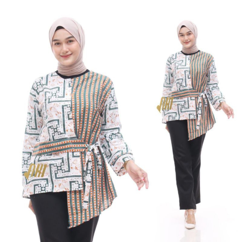 Batik wanita ASJ SA HRB026 Kenongo Kemeja Tosca Pendek Batik Fashion Baju Wanita - couple priawanita