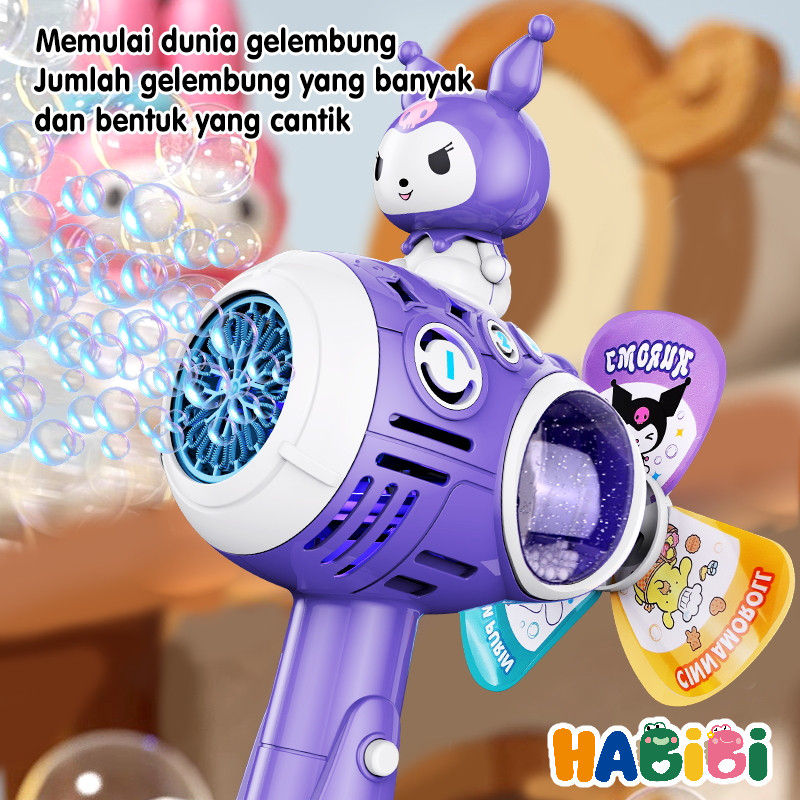 Habibi Mainan Kuromi Bubble , Mesin Tiup Gelembung Otomatis dengan Efek Cahaya untuk Anak 2024